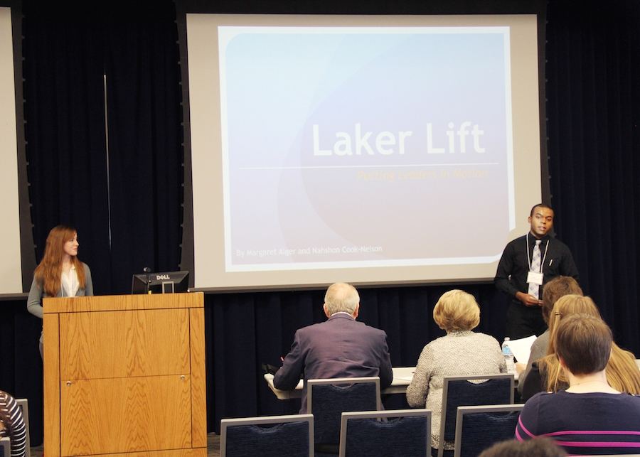 Nashon Cook-Nelson and Margaret Alger presenting their pitch, "Laker Lift"