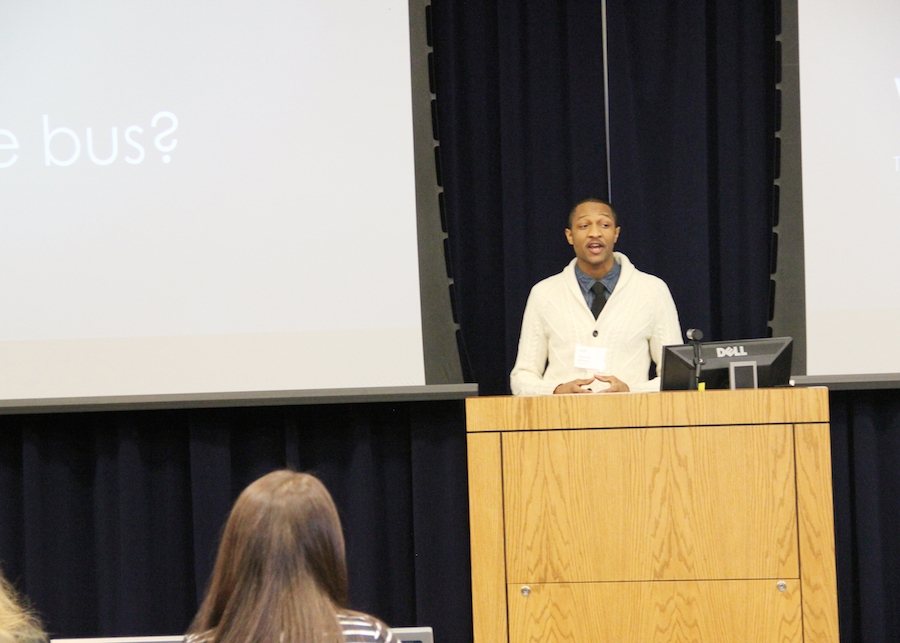 Thomas Nichols begins his final-round pitch, "Where's the Bus?"