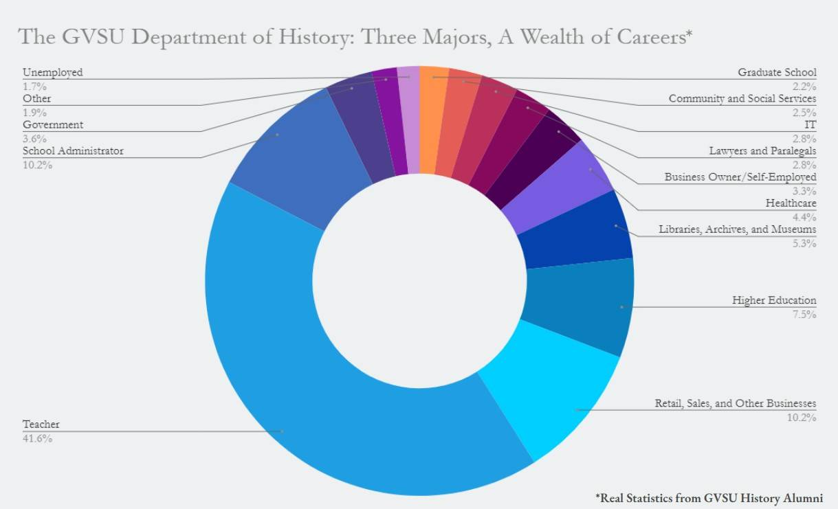 Or, choose the major in Group Social Studies that is designed for students seeking teacher certification to teach in high schools or middle schools. Students study a variety of academic fields including History, Geography, Political Science, and Economics. Students acquire a strong background to engage their classrooms with vibrant content. Students have historically had great success in landing jobs in classrooms in Michigan, but also across the United States, particularly in Texas and Utah. A significant number of alumni have gone into educational administration, graduate school, and a wide variety of other professions. Social studies students can choose from a Bachelor of Arts (B.A.) or Bachelor of Science (B.S). We also support the Pedagogical Content Knowledge for Elementary Teaching major designed for students seeking teacher certification in elementary education.