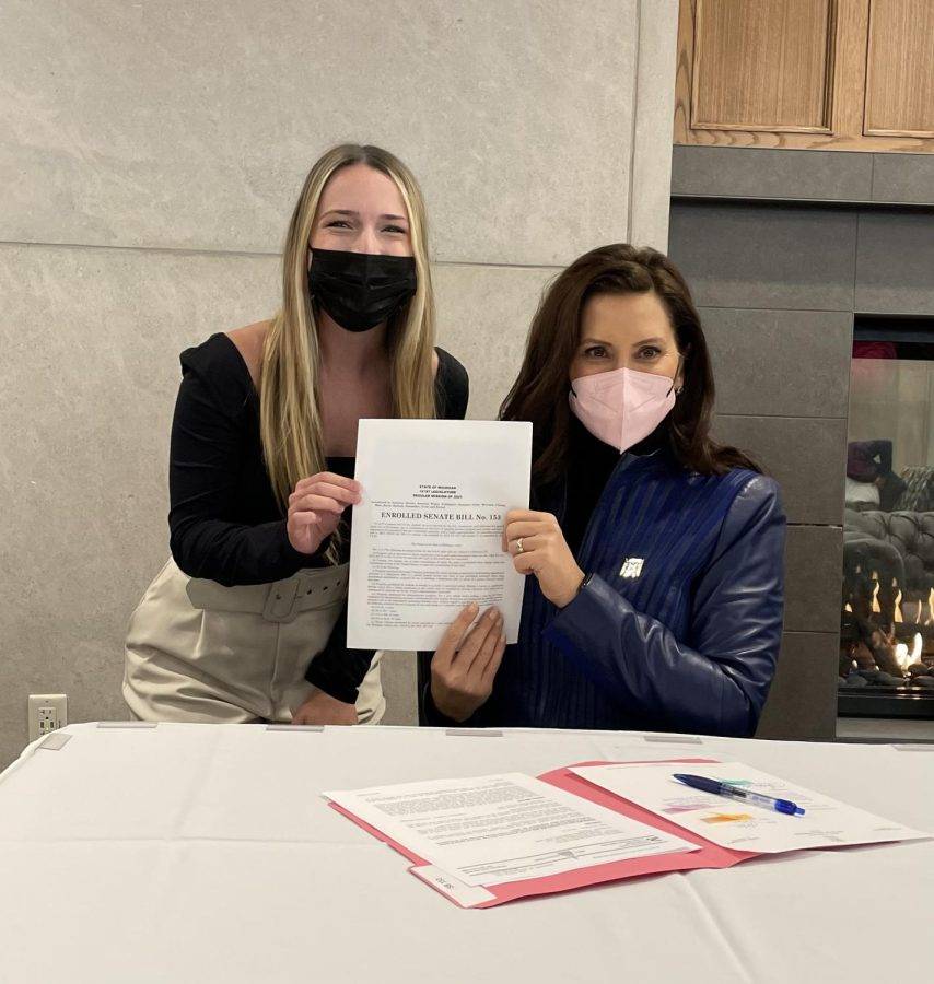 Ashley Rapp, a 2018 Honors alumni, recently worked with Governor Whitmer to end the period tax in Michigan. Check out this article published by The Oakland Post here! According to the article, Ashley was an active advocate for accessible menstrual supplies for the GVSU food pantry, and has continued that advocacy in the metro-Detroit area after graduation.