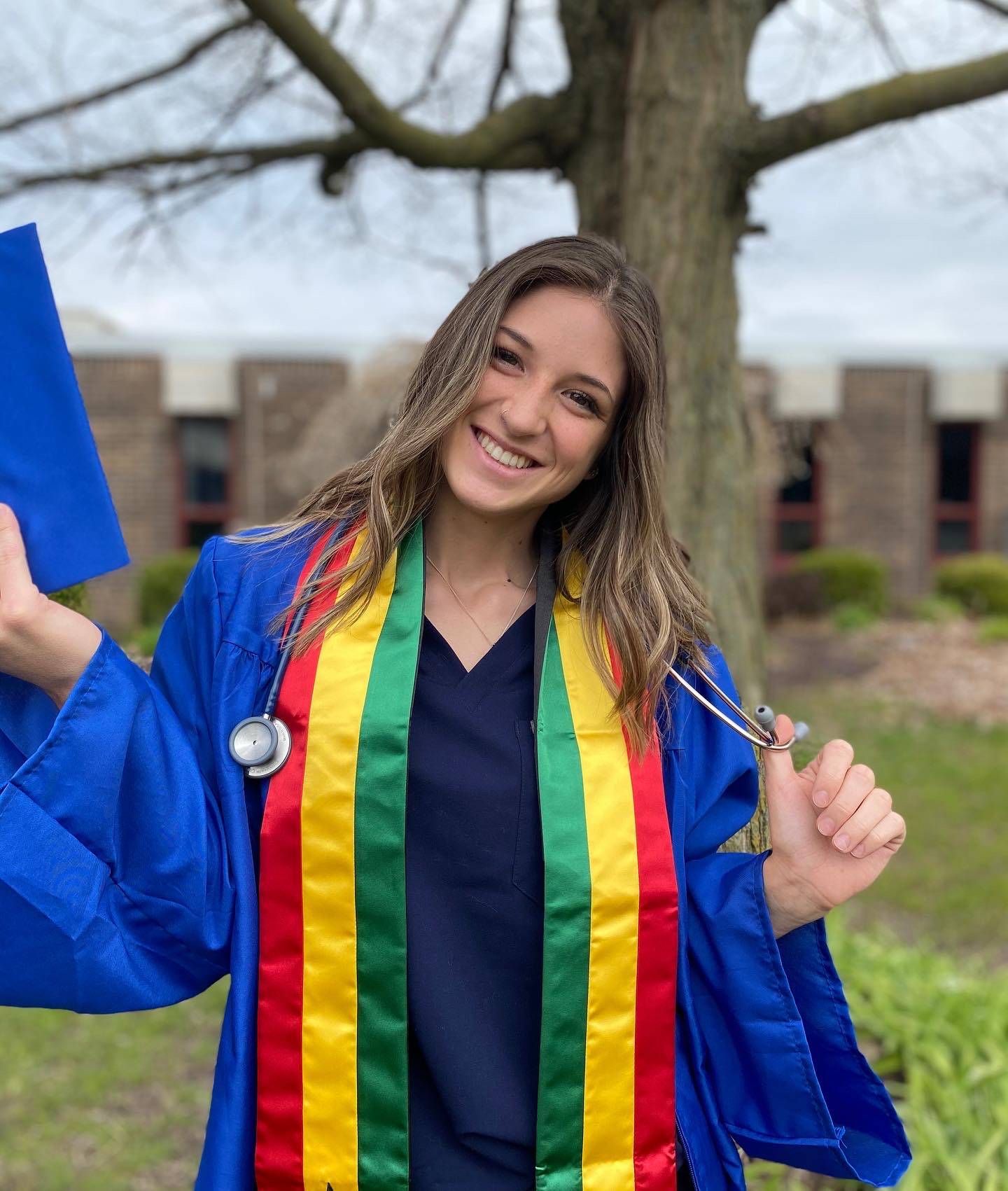 Emma Merlington graduated from the Honors College in 2020, and majored in nursing. Currently, Emma works as a Registered Nurse in the Pediatric Intensive Care Unit at Mott Children's Hospital in Ann Arbor. Emma explained that her Honors experience helped her to become more well rounded by taking classes outside of her major. She also learned a lot about different subjects and they inspired her to pursue different opportunities on her study abroad and current career. The leadership and problem solving junior seminar with Mayor Rosalynn Bliss was Emma's favorite Honors College class. Emma's advice to current or future honors students is to take advantage of the opportunities offered to you at Grand Valley and the Honors College. The resources on campus are amazing, so make an effort to reach out and get involved. There are so many people who want to help you find your place and succeed!