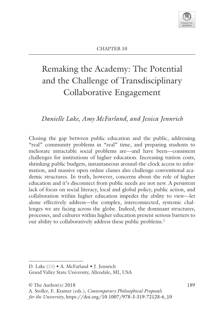 Remaking the Academy: The Potential and the Challenge of Transdisciplinary Collaborative Engagement