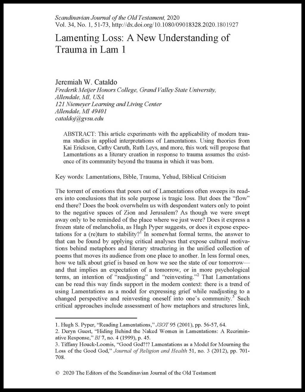 Published in August 2020. Scandinavian Journal of the Old Testament website.