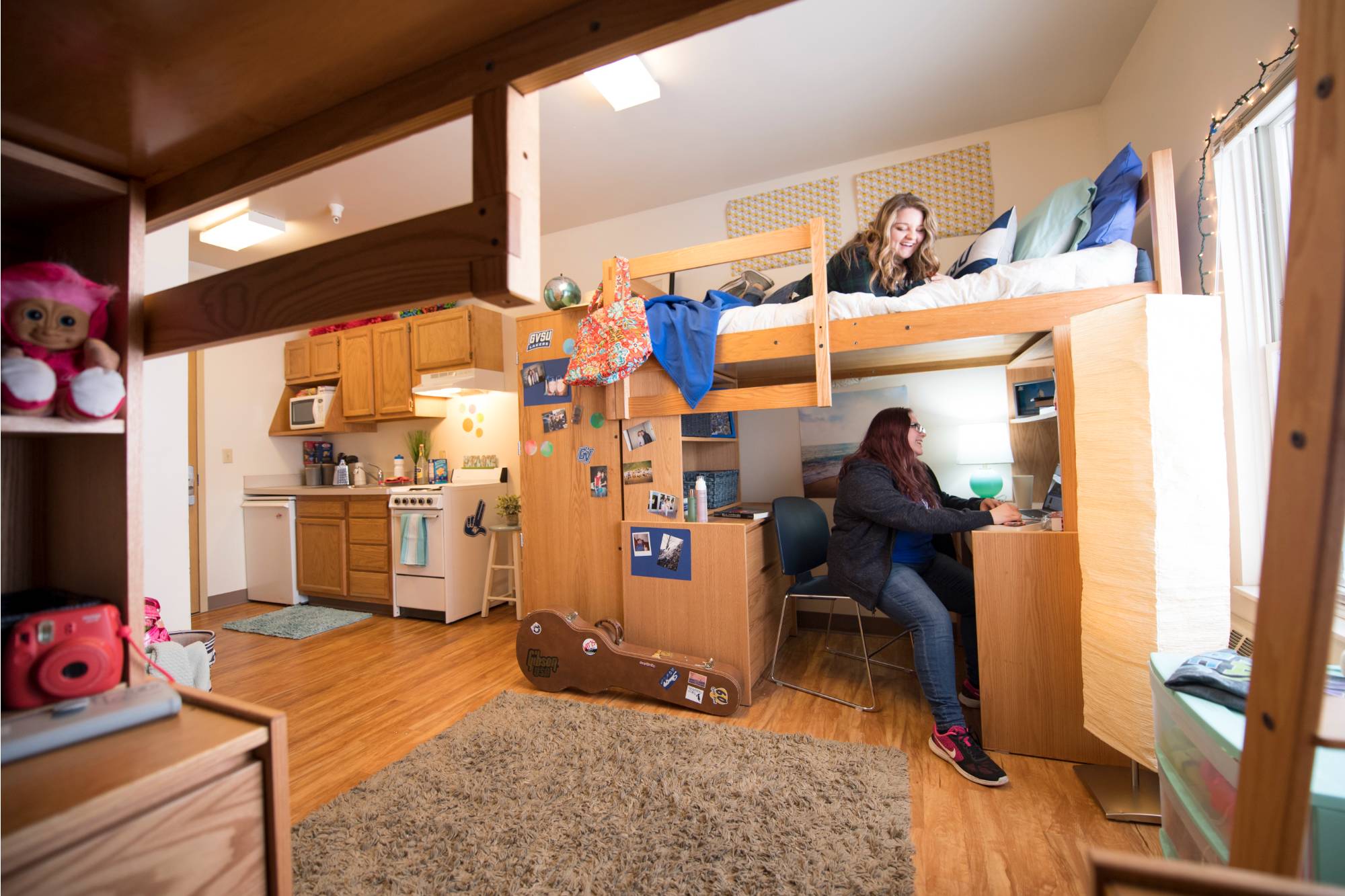 Frey is home to 1-Bedroom Apartment-Style units reserved for first-year students. Each unit comes fully furnished, and students get a private bathroom with a kitchenette. While residents still share their bedroom/living space, they get more privacy and flexibility than in cluster or traditional style. Residents still form a strong community and connections here. These buildings are located in the North Campus Neighborhood near Kleiner Commons, the tutoring center, Fresh Food Co., Fuel, and Mackinac Hall, where most freshmen have classes.