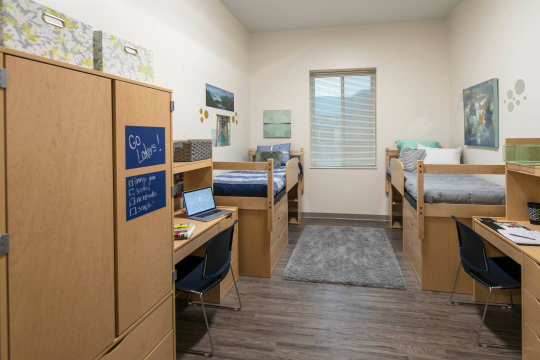 The exact room dimensions and layout may vary. Furnishings and finishes may vary as well. We strongly recommend waiting until move-in to purchase items such as extra furniture or rugs once you are able to take exact measurements and determine how you want to set up your room.