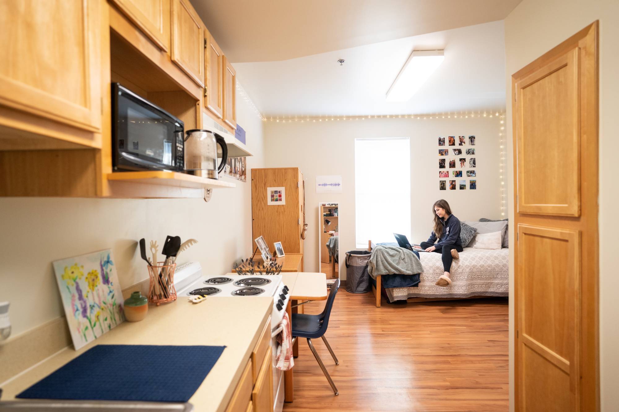 - Students live in gender-inclusive, apartment-style housing on the southern side of campus.