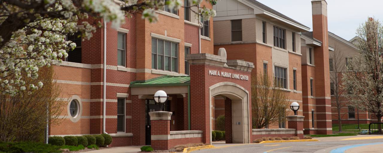 Murray Living Center Apartments are fully furnished apartments. Murray apartments provide residents with increased privacy and space, while still being close and convenient to classes and campus resources. They are located in the South Campus Neighborhood near The Blue Connection, Library, Niemeyer Honors College, and the Kirkhof Center. Residents can enjoy the privacy of their own bedroom and additional living space, all while still enjoying the community that has been built. Outside, there is a volleyball and basketball court, and a large courtyard where you will typically see students lounging or playing outdoor games.