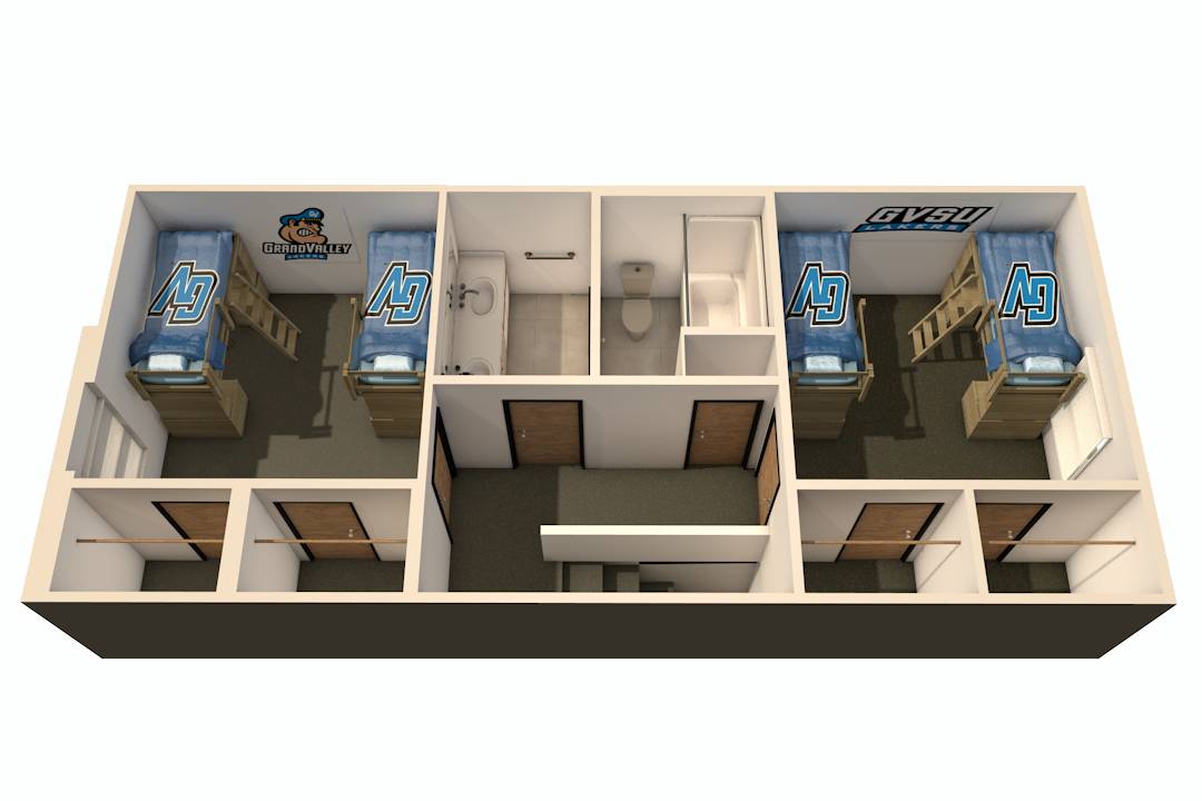 Murray* and VanSteeland two-bedroom (VanSteeland: two students per room) (Murray: two or four students per room)