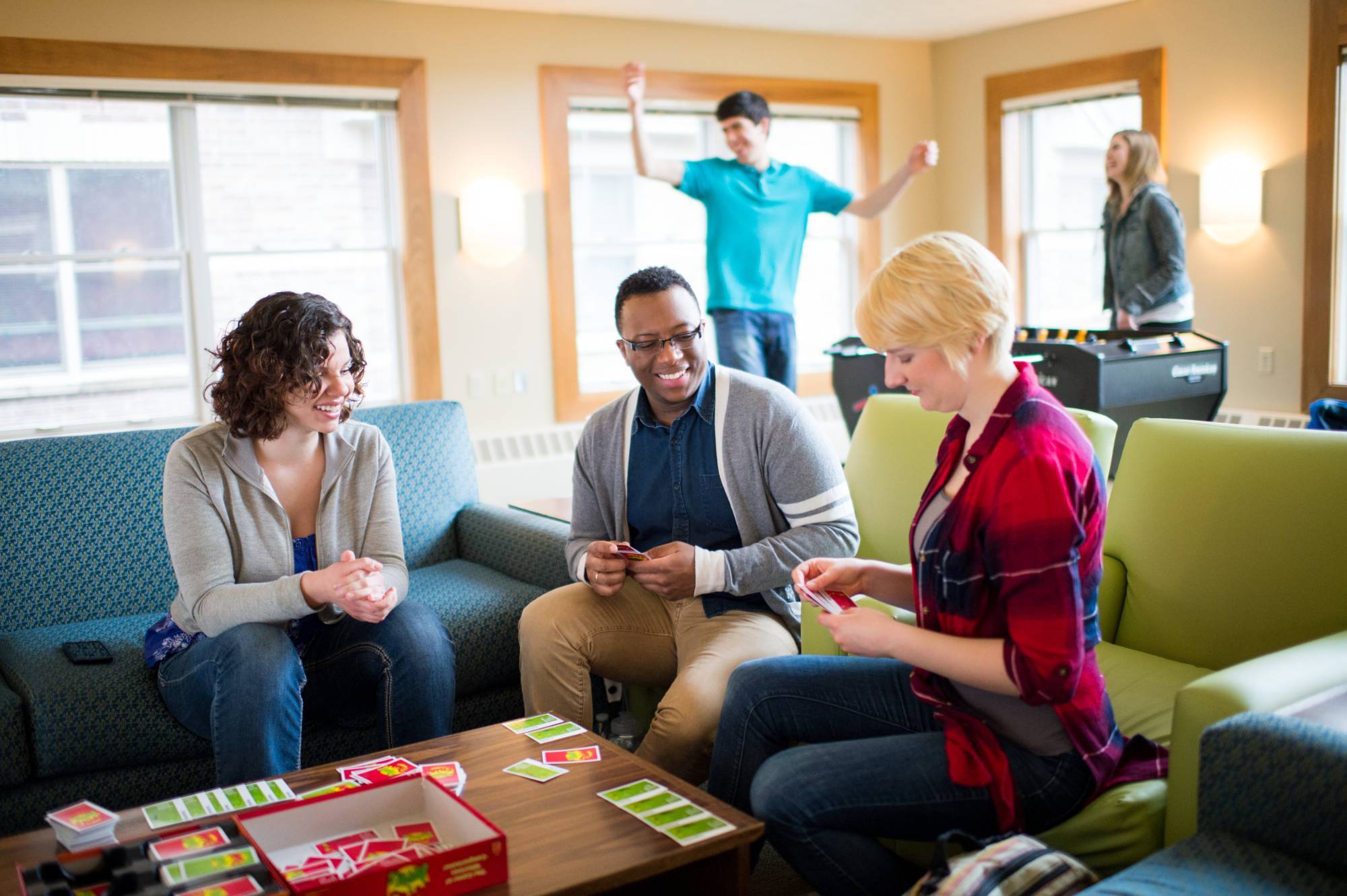 One-bedroom Apartment-style housing is reserved for first-year students. Each room comes fully furnished, and students get a private bathroom with a kitchenette. While residents still share their bedroom/living space, they get more privacy and flexibility than cluster or traditional-style. Residents still form a strong community and connections here. These buildings are located on North campus near Kleiner Commons, the tutoring center, Fresh Food Co., Fuel, and Mackinac Hall, where most freshmen have classes.