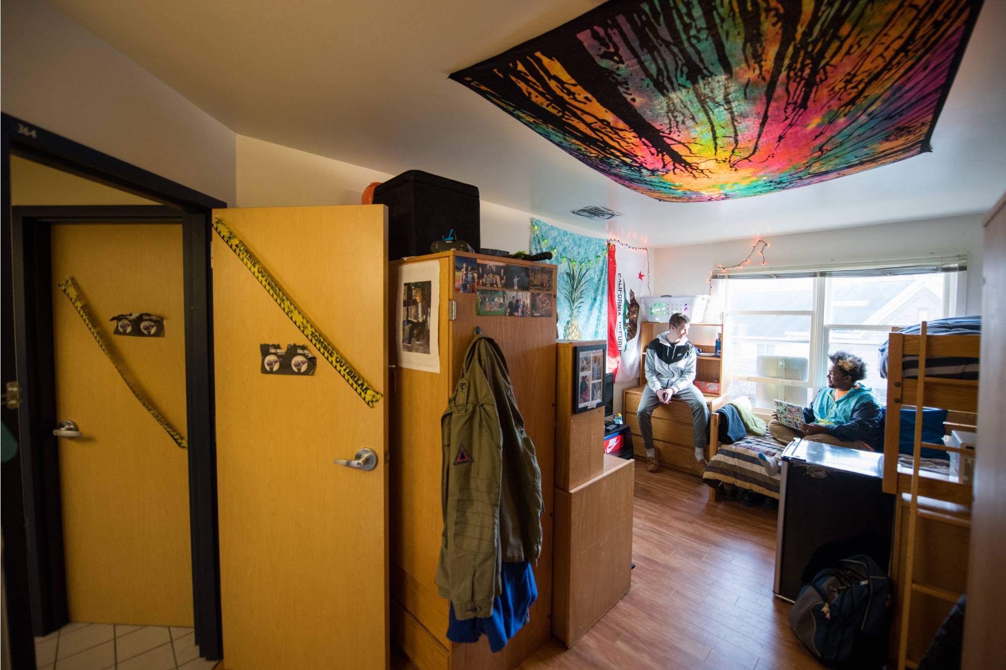 Suite-style housing consists of two students per room, four students per suite with a shared bathroom, and are reserved for freshmen. Two residents share a double fully furnished room with a sink. Suite-style is a great way to form a sense of community and relationships with other residents. These buildings are located on North campus near Kleiner Commons, the tutoring center, Fresh Food Co., Fuel, and Mackinac Hall, where most freshmen have classes.