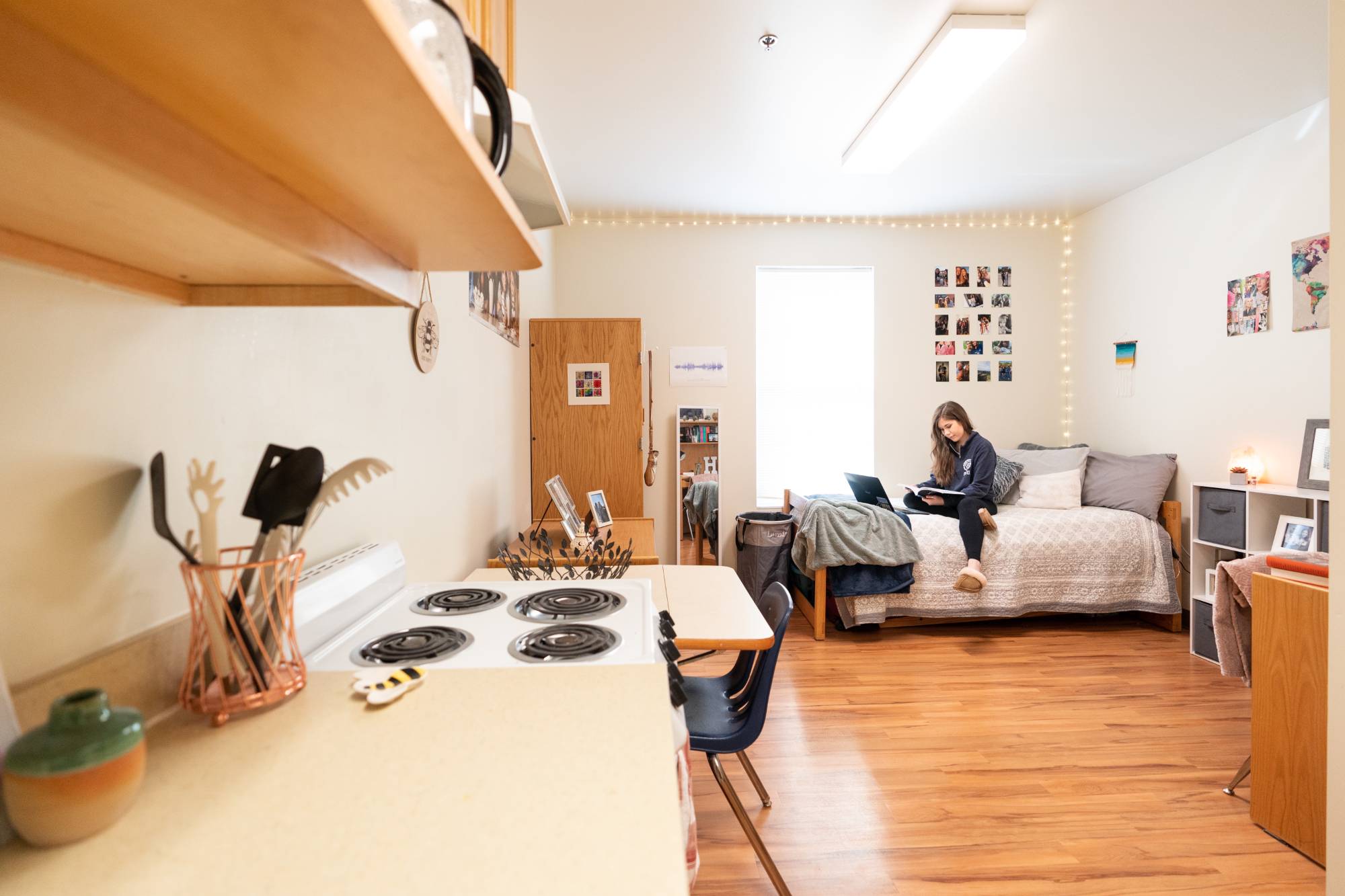 Located on Pew Campus, close to all of the downtown Grand Rapids attractions, Winter Hall features fully furnished 1-person efficiencies and 2-Bedroom/2-Person apartments with air conditioning and an on-site workout facility (for use by Secchia & Winter Hall residents). Students living here enjoy the convenience of living close to their classes, restaurants, and city life. The Laker Line is close, allowing quick access to downtown, the Health Campus, and the Allendale campus.