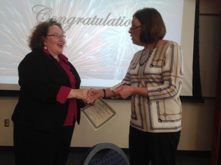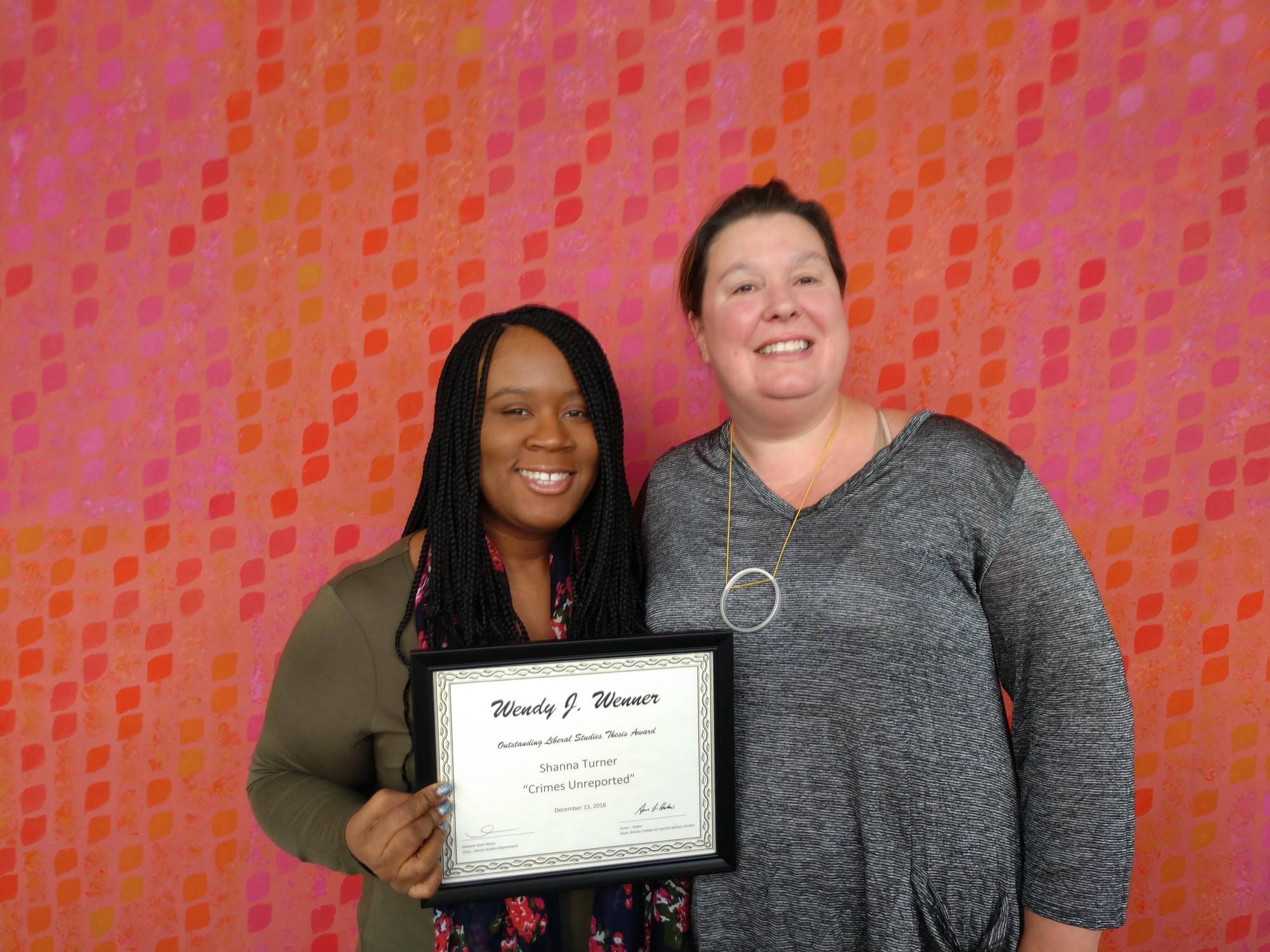 Amanda Niswander (left) Wendy J. Wenner Sr. Thesis Award for "Buildling Communities for Restorative Justice" and Ivy Baillie (right) Stanley Krohmer Senior Project Award for "Identity and Amateur Literature"