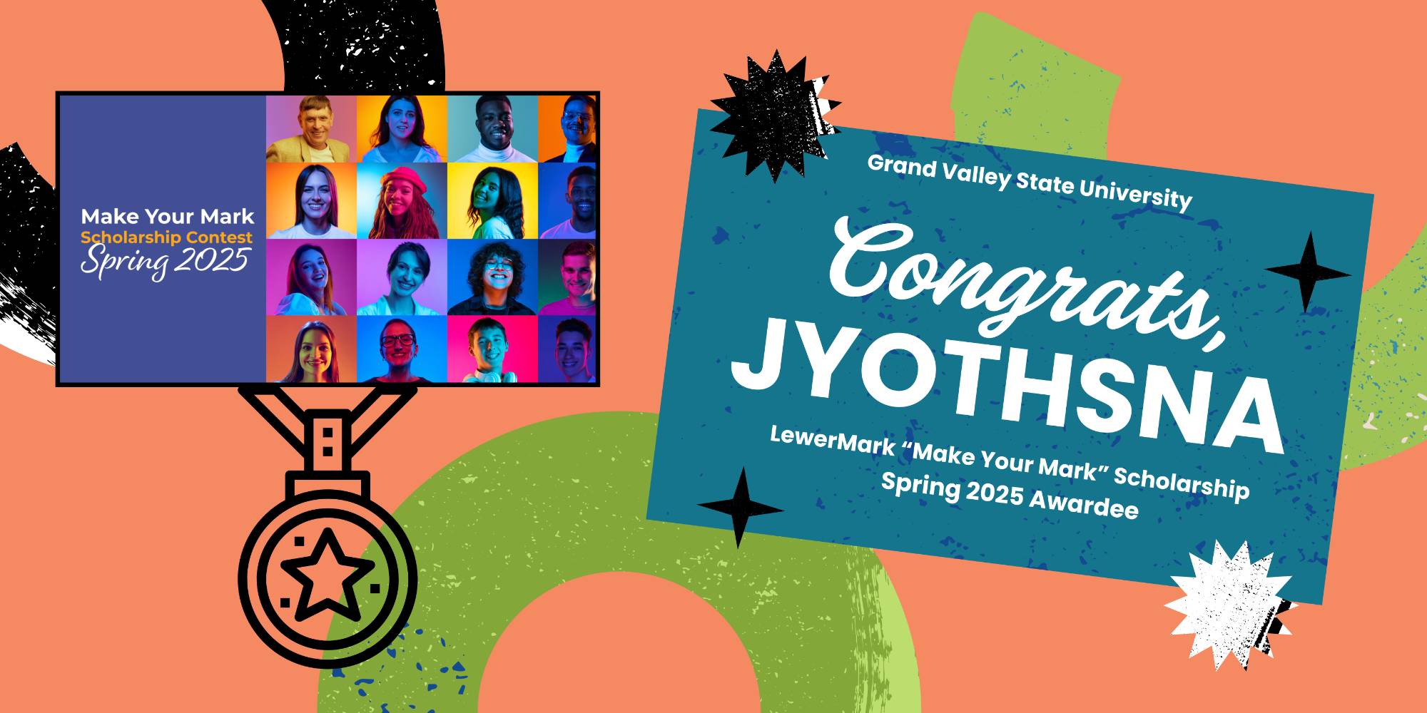 The International Student Services team is proud to congratulate Jyothsna Allu on being awarded the $4,500 Spring 2025 LewerMark "Make Your Mark" Scholarship! Congratulations Jyothsna— we're so happy to see a Grand Vally student be awarded for their hard work!