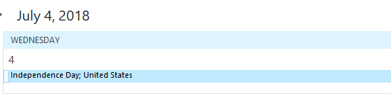 4. Outlook will add all the holidays as an all-day event to your calendar. It will appear at the top of your calendar.