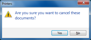 5. Verify that you want to cancel all of the selected print jobs by clicking on the 'Yes' button.