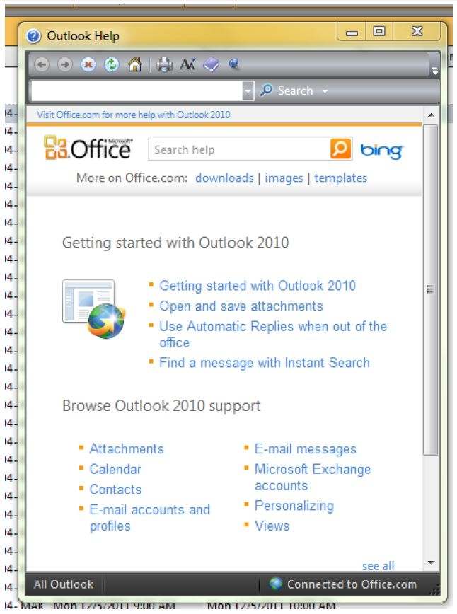 Note: For more detailed information about Messaging and Calendars or other Outlook capabilities, click on the Blue Question-mark in the upper right-hand corner of the page. This will bring up the Outlook Help panel.