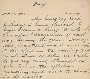 Roy K. Cronkhite, draftsman and mechanical engineer, was born in Canada October 14, 1874. On his 32nd birthday, Mr. Cronkhite began recording his daily routine in a set of diaries. He continued the diaries for fifty years.