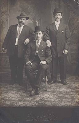 A postcard album comprised of 42 black-and-white photographs, mostly Real Photo Post Cards (RPPC); 25 are stamped "[William J.] Goodfellow" and one "[John H.] Taylors Studio." Both photographers were located in South Range, Michigan. Nearly all the photos were taken indoors in a studio and are of women alone and groups of women, men alone and groups of men, children, and dogs. Two were taken outdoors. The location is most assuredly is in or the vicinity of the Upper Peninsula town of South Range, Michigan, a copper mining area just a few miles south of Houghton. Photo dates range from 1905 to 1915.
