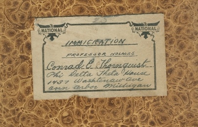 Conrad Thornquist was a Michigan native who attended the University of Michigan as an undergraduate and attended Harvard Law School in the Class of 1931. His papers include handwritten and bound class notes from his Harvard Law School coursework with annotations, newspapers with headlines of significant events, and picture postcards and art cards from European travels. The collection also includes Justice Court docket book from Ottawa County, Michigan, Oct. 22, 1849–April 3, 1862; and a memorial scrapbook for Claude C. Hopkins, former head of Lord & Thomas advertising agency.
