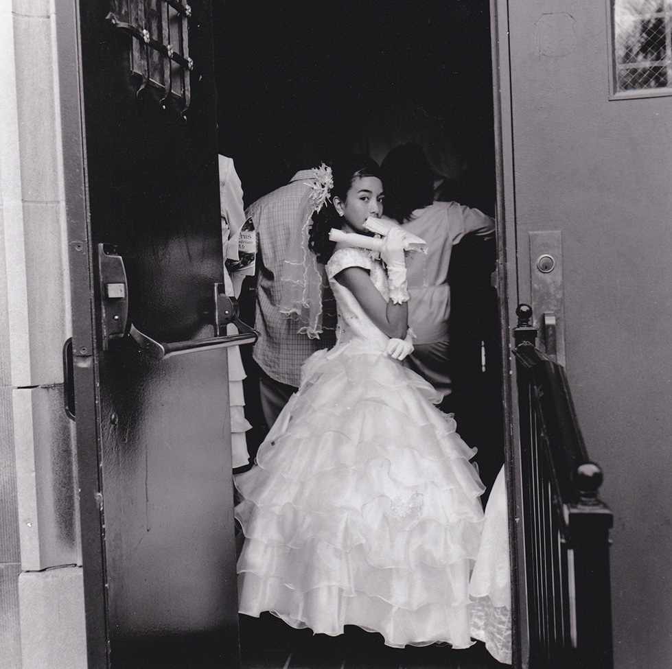 Mariana Martinez, 10, waits for the start of First Communion services at Catholic church in Mexicantown, Detroit, MI 2012