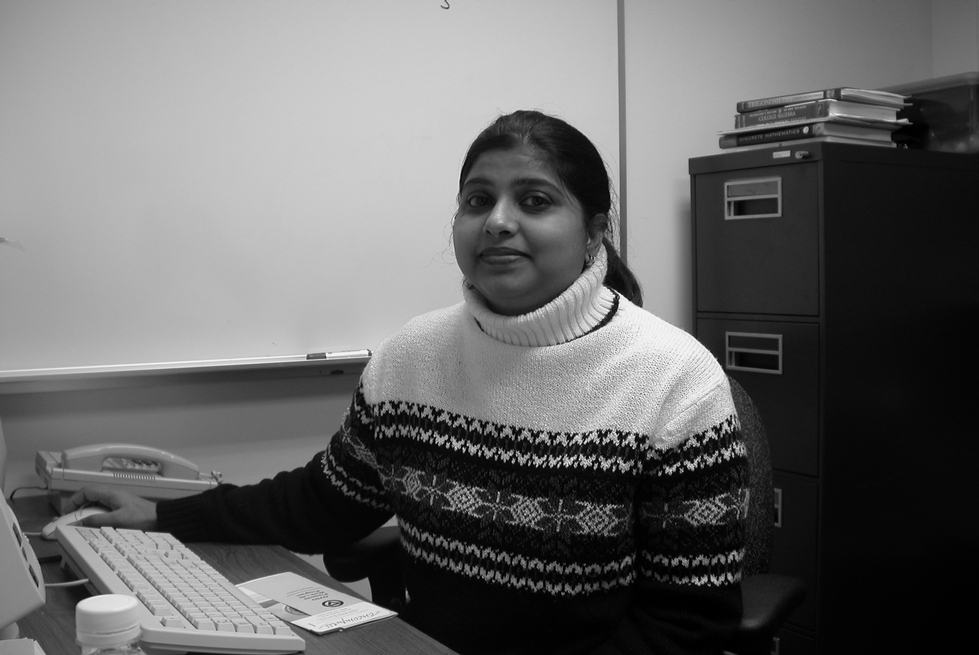 After earning bachelor’s and master’s degrees from the University of Madras, Sailakshmi Srinivasan taught applied math for engineering students in India for several years. When her husband’s career as a software consultant brought her family to Grand Rapids after stops in Minneapolis and Philadelphia, Sai took a position as an Affiliate faculty in our department this year teaching courses such as Math 110, 122, 123 and 201. Sai enjoys teaching at Grand Valley though it has been a challenge to make the transition to teaching in a different country. For example, working with classes in which students’ abilities vary widely is a new experience for her. Besides her teaching duties here, Sai enjoys coaching talented students for competitive exams such as the Continental Math League, the Michigan Math League, and the SAT. In fact, Sai’s daughter, at the age of ten, recently won a first prize trophy in the Michigan Math League and scored a remarkable 610 out of 800 on the mathematics portion of the SAT.