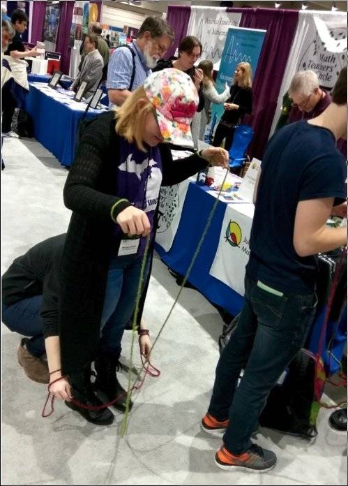Outside of the poster session, students had the opportunity to attend short sessions spanning across nearly every subfield of mathematics, including talks given by GVSU faculty. Other events the students were able to enjoy included a routine by “stand-up mathematician” Matt Parker, a fun topology-related demonstration in the Exhibition Hall, and the graduate school fair.