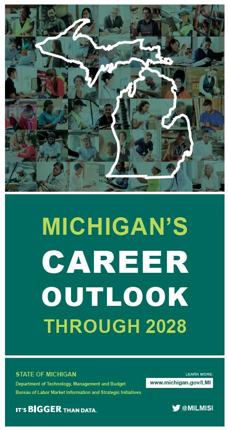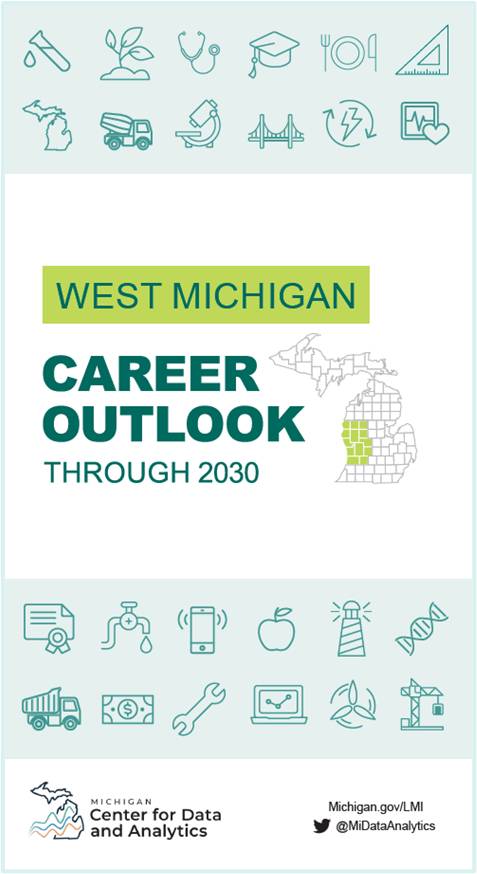 The Michigan Center for Data and Analytics publishes Regional Career Outlooks. These publications provide multiple lists of in-demand occupations through 2030 by education and training requirements, as well as highlight the most in-demand STEM occupations for each of Michigan's Prosperity Regions.