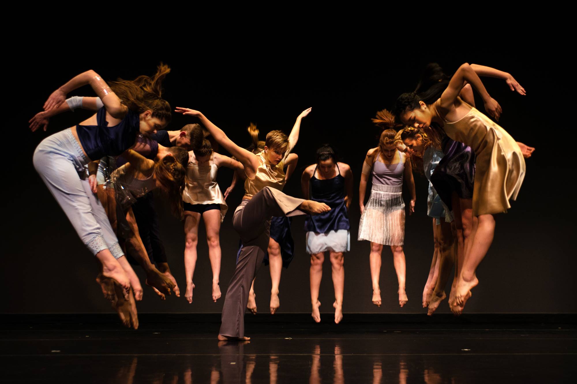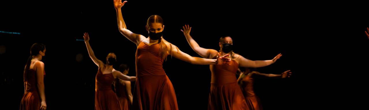 The Dance Company performs the works of faculty and guest artists, along with select student works, in two annual mainstage performances. These concerts are held in the Louis Armstrong Theatre on the GVSU Allendale campus. Keep an eye on our events calendar to see when you can join us.