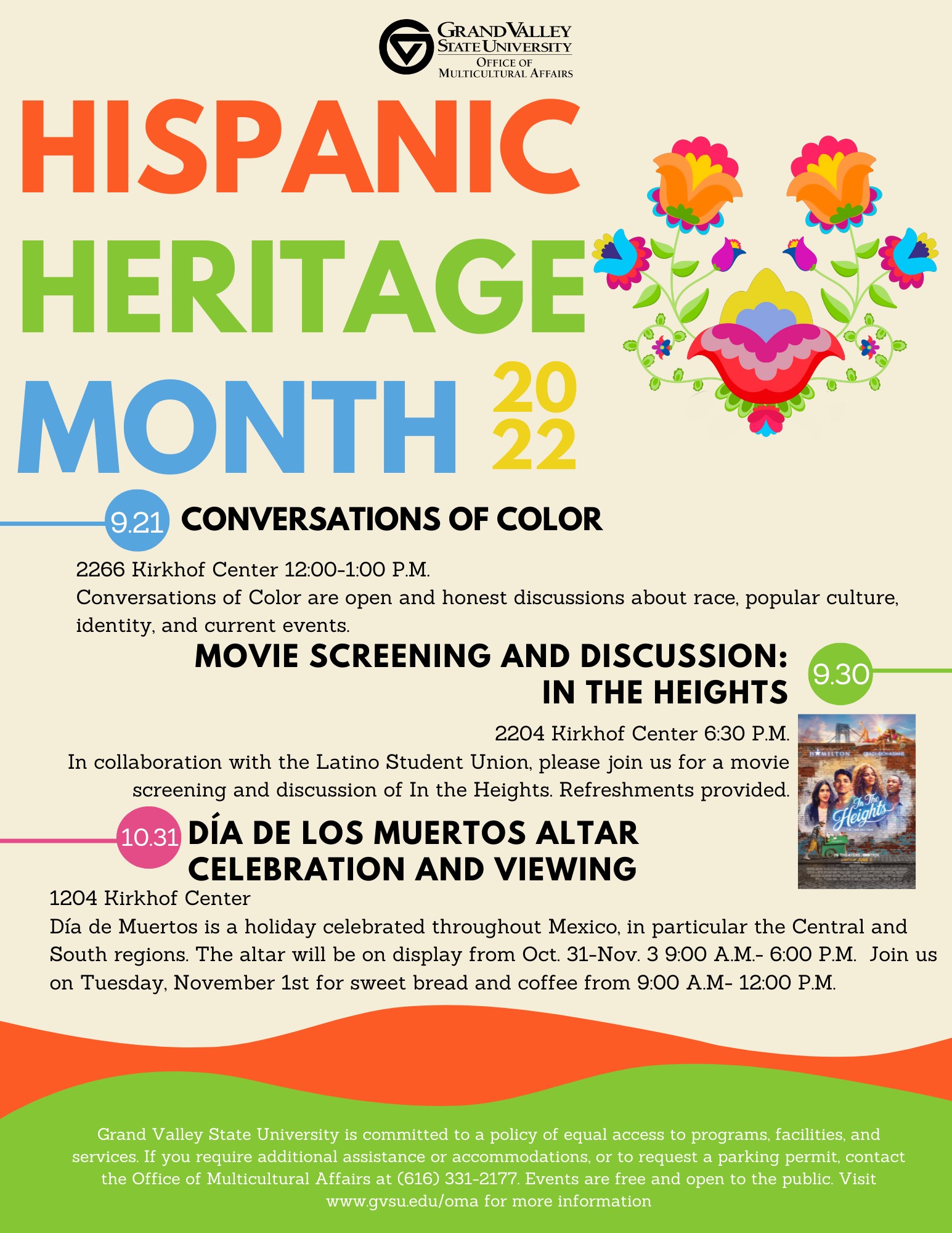 Hispanic Heritage Celebration is the celebration of the history, culture, traditions and contributions of the U.S. Latino/a/x and Hispanic communities. The celebration is recognized every September through October.