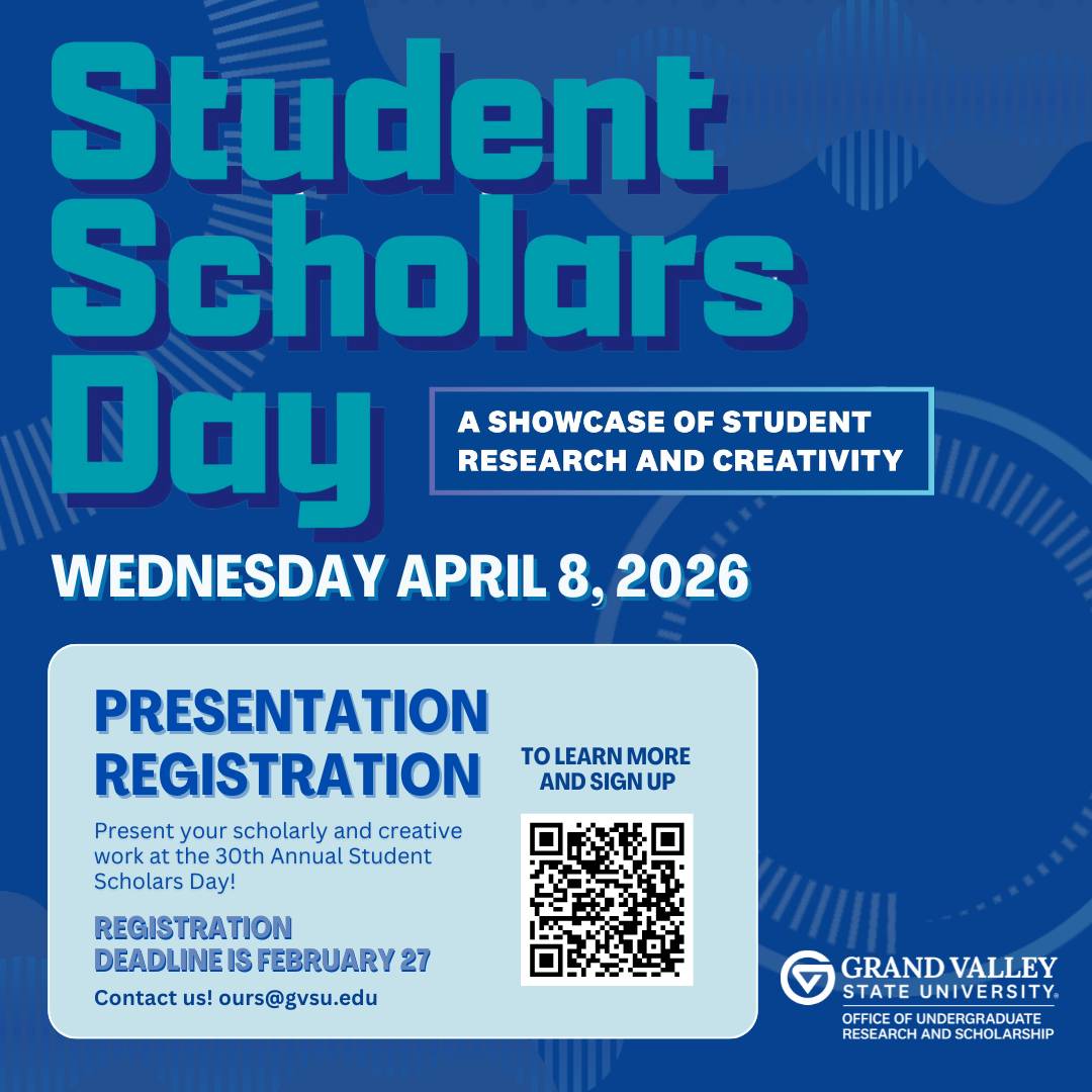 Promoting Student Scholars Day to your students has never been easier! We've created a centralized place to download posters, PowerPoint, and social media posts to easily share with others. Would you still like us to send you print copies? We can do that too. Just fill out our Promotional Materials Request Form.
