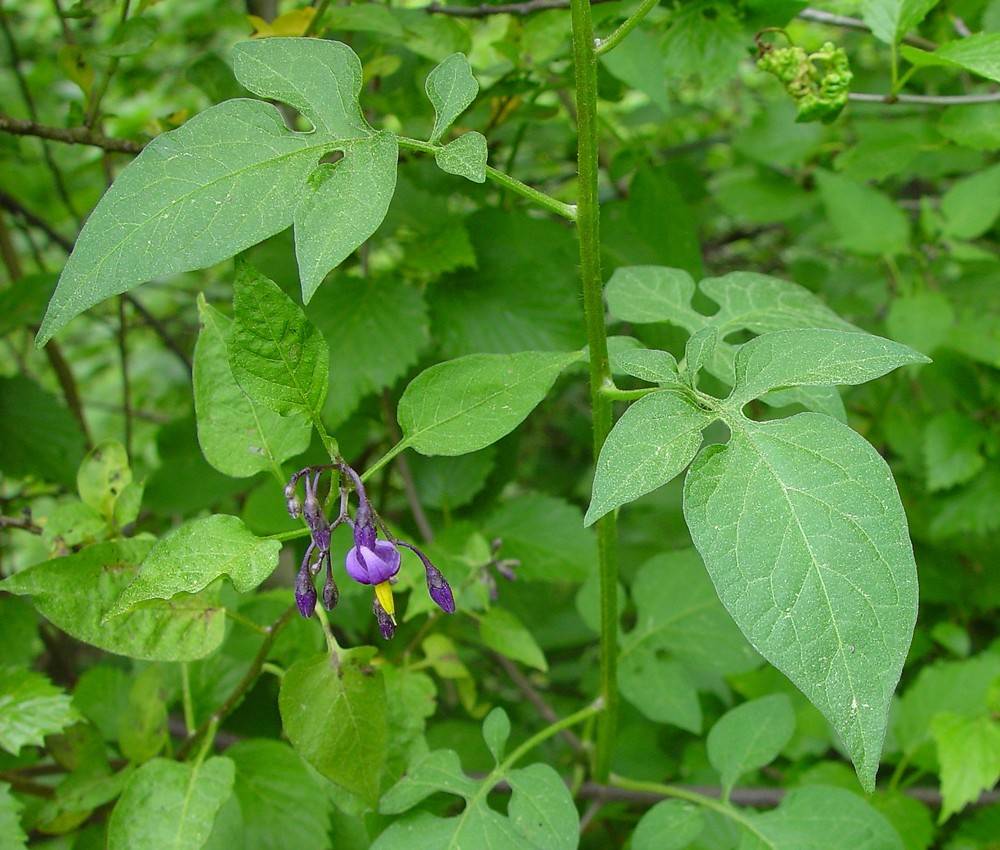 Herbaceous vine; leaves heart-shaped and lobed; often with deep lobes form ֎spade-like appearance; flowers purple or blue; ֎berries red (poisonous); moist soil, wet meadow, swales, stream banks, bogs.