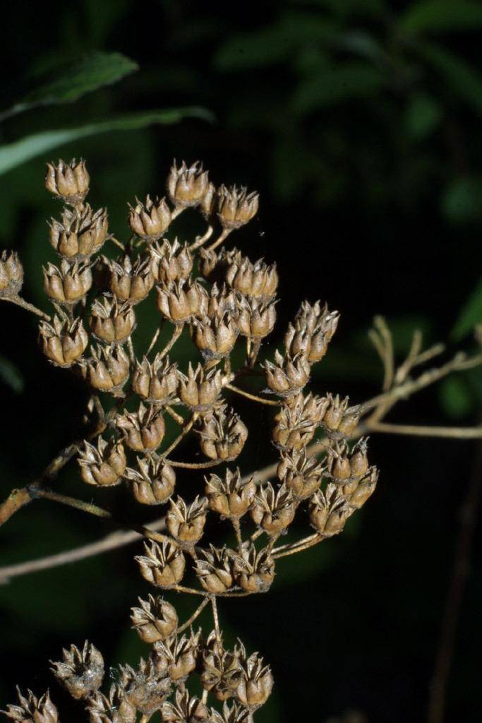 Medium shrub; ֎leaves opposite or whorls of 3, 2-3” long, waxy and thick, elliptic, sharp pointed; flowers in ֎spherical ball-like heads at the end of a long stalk in the axils of the upper leaves, whitish in color; shallow marshes and ponds, scrub/shrub, floodplains along streams.