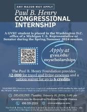 We send email to GVSU political science and international relations majors about current internships. We also have some special opportunities for internships in Washington, DC through our affiliation with the Washington Center.