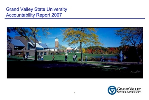 First Accountability Report published, a public review of Grand Valley's academic and economic performance.