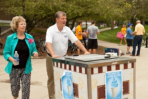Thousands watch a LipDub video produced by the university for the 50th anniversary with the song Come Sail Away by Styx. President Haas and his wife, Marcia Haas, make cameo appearances.
