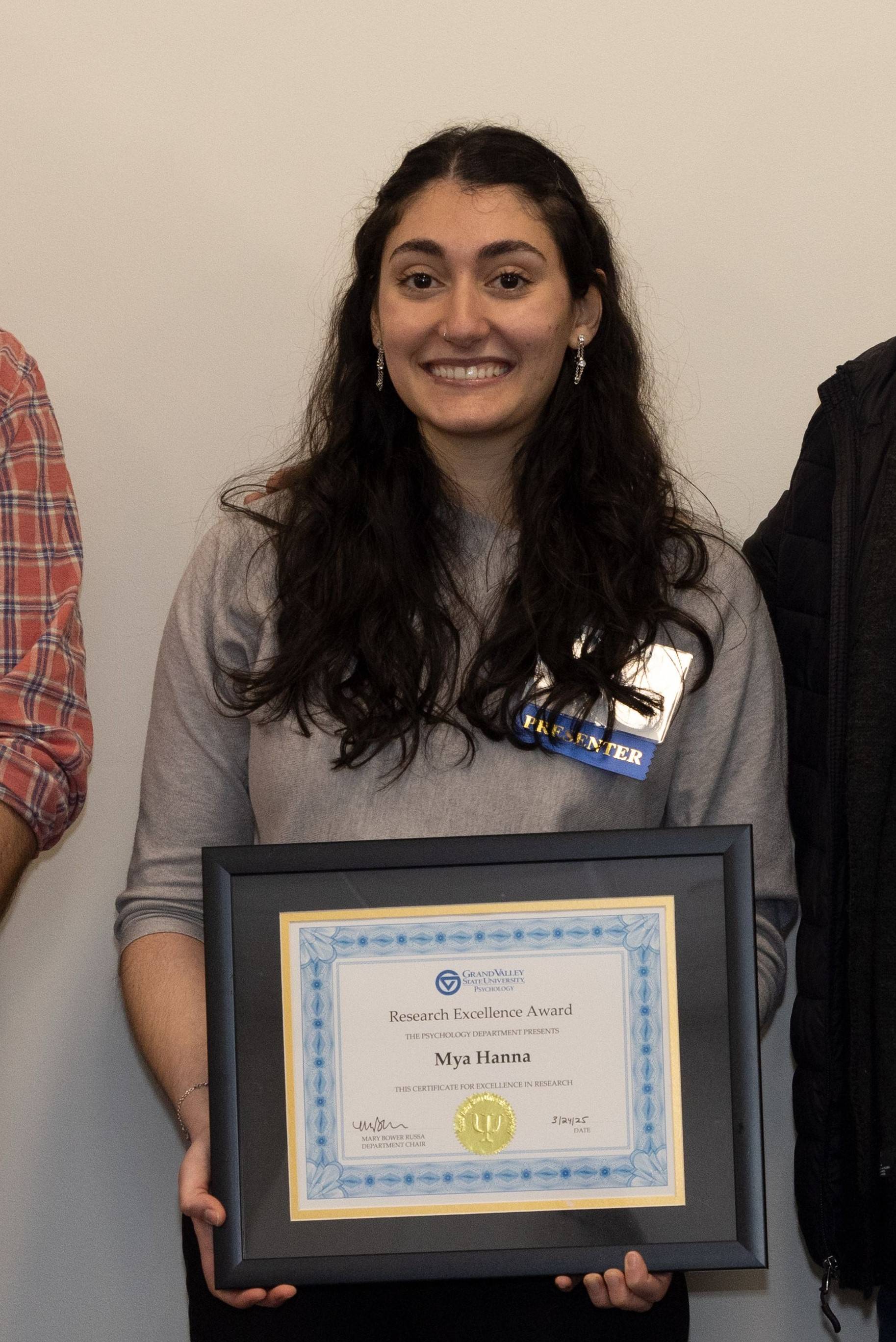 The Research Excellence Award recognizes undergraduate students for outstanding contributions to and performance in departmental psychological research. One award will be given annually for each major (PSY, BNS). Recipients of the prestigious award will have demonstrated curiosity, critical thinking, open-mindedness, evidence-based decision-making, and overall research excellence. Award recipients are nominated by the Psychology faculty and selected by the Psychology Department Awards Committee.