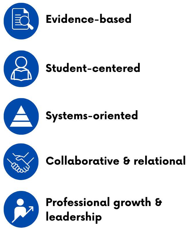 These program values form the basis of our philosophy of school psychology practice, guide our training model, and inform the work of our alumni.