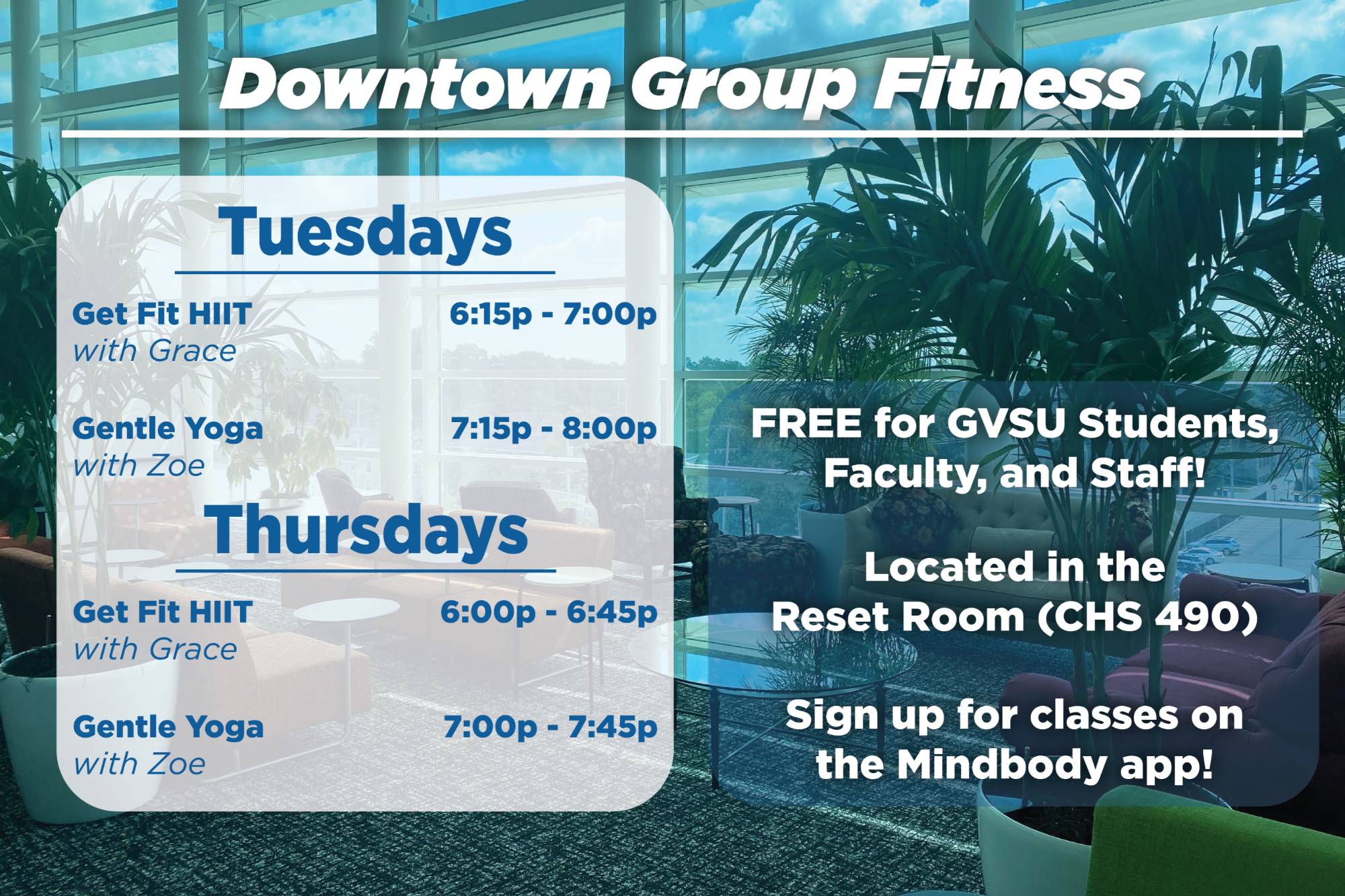 - Use this link to register for your GVSU Recreation & Wellness' Mindbody account.