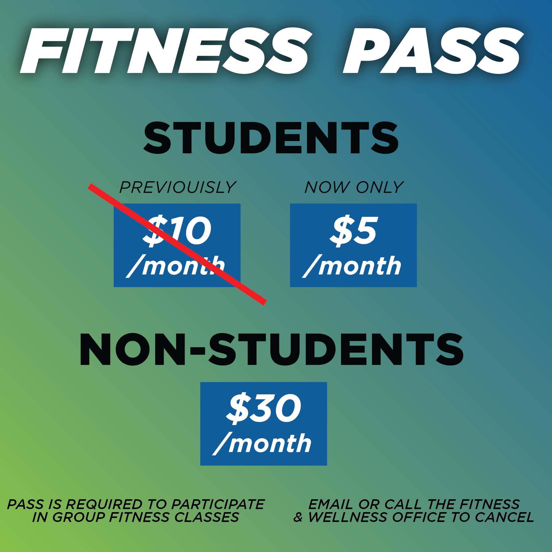 - Student Semester All Class Pass: $50
