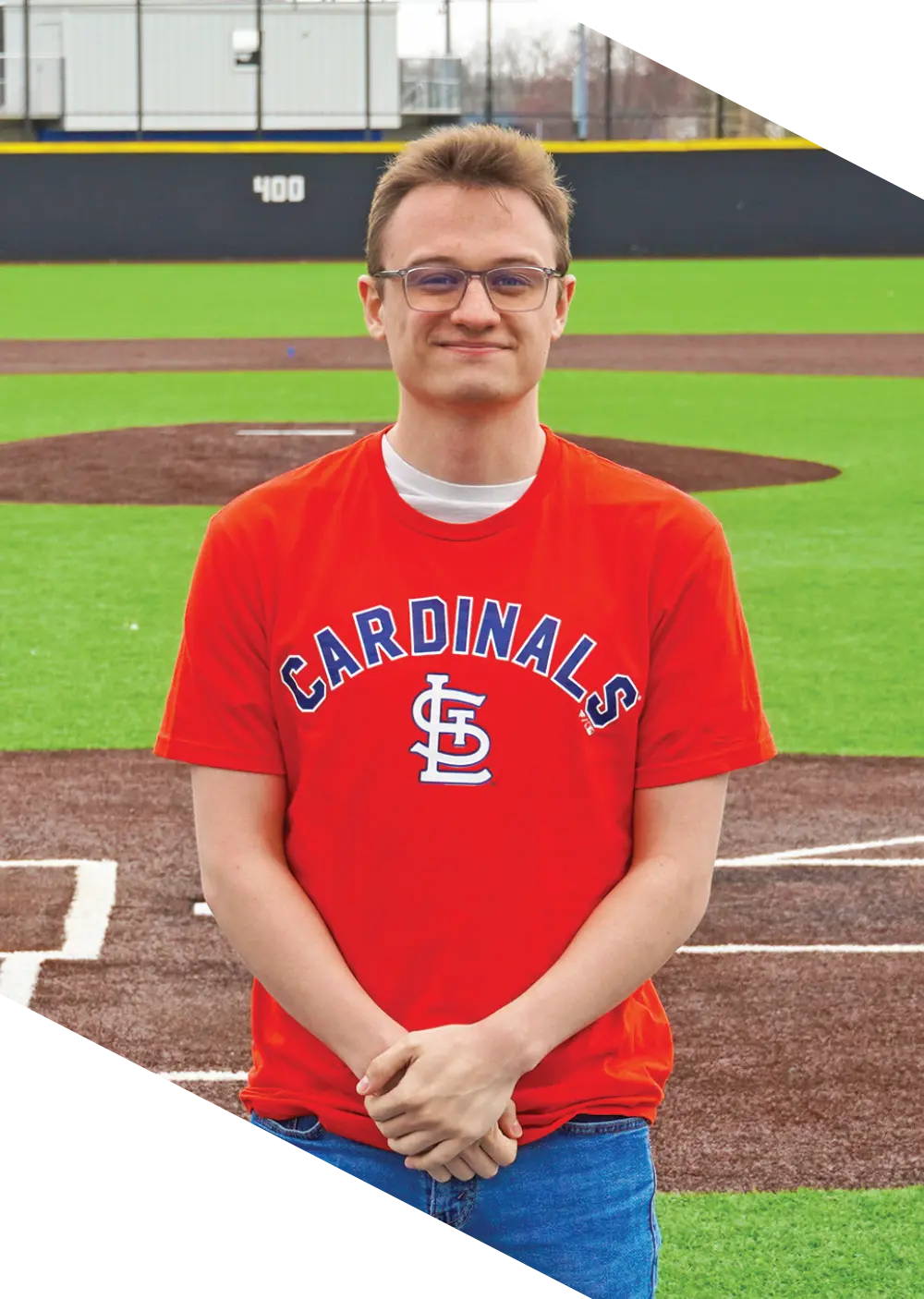 Jensen Holm stands on the GVSU baseball field proudly wearing his new team’s colors after landing a dream role as a junior machine learning engineer with the St. Louis Cardinals.