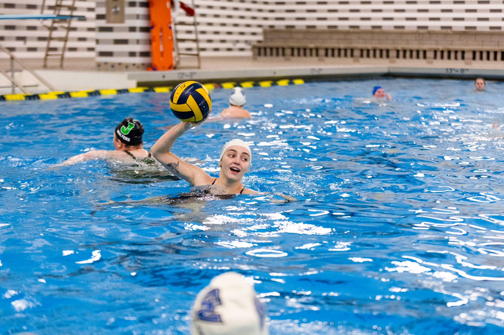“Being on the women’s water polo team has helped me grow my confidence at GVSU,” says Julia Michalik, vice president of Women’s Water Polo Club. “Being surrounded by women everyday at practice helps teach me how to strengthen myself as a woman so I can protect myself and the women around me.”