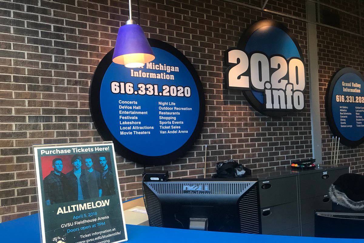 The 2020 Information Desk serves as your wealth of knowledge for general campus information and events, as well as West Michigan information for all of our students, staff, faculty, and guests. Visit us inside of Kirkhof Center!