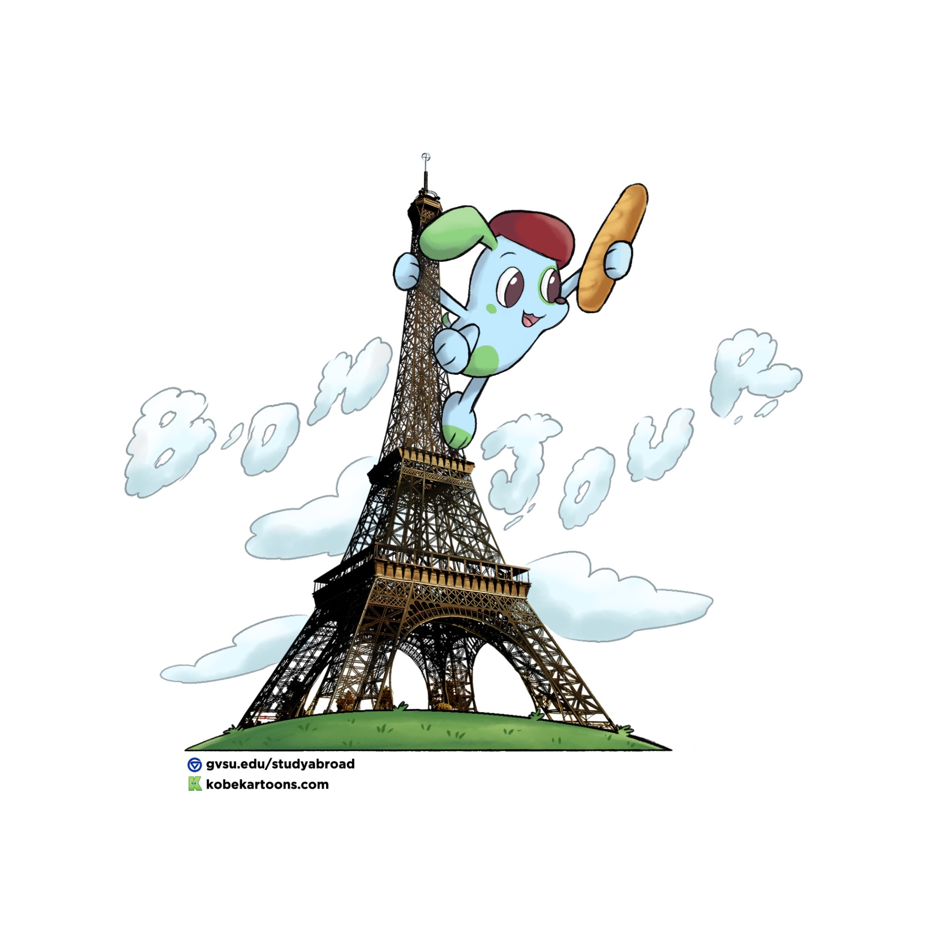 She is inspired by Japan and its use of local mascots. We hope she will inspire students to study abroad -- and you'll see her all over our promotional materials.