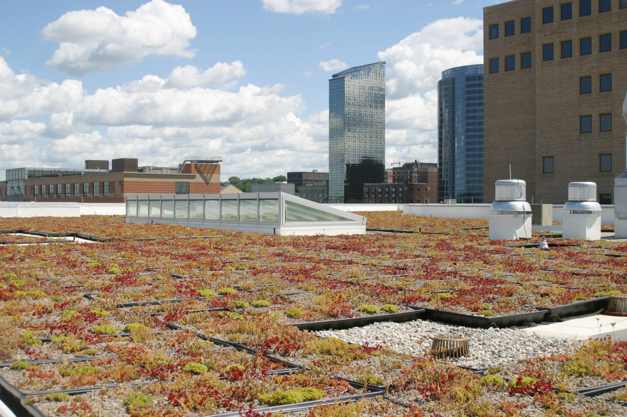Impermeable surfaces increase water runoff. Grand Valley has made efforts to decrease impermeable surfaces on its campuses with green roofs; permeable pavement, sidewalks, and courtyard; and a 9,000 square-foot rain garden near the Kelly Family Sports Center.