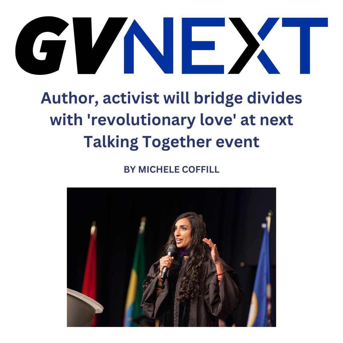 Valarie Kaur, filmmaker, civil rights activist and author, will discuss how "revolutionary love" can bridge divides at the next Talking Together event, Thursday, February 23, at the Eberhard Center on the Pew Grand Rapids Campus.