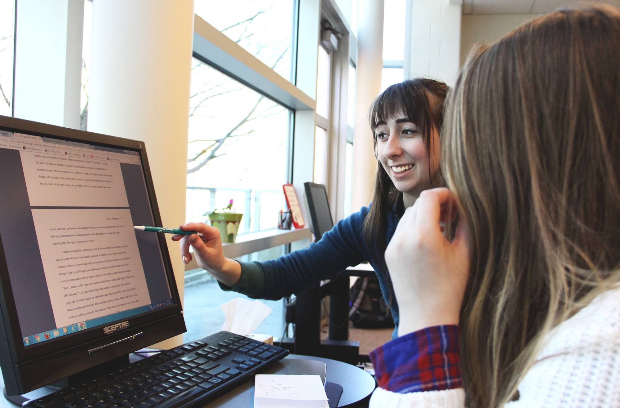 Writing Consultants are trained to work with students one-to-one or lead peer response groups. Consultants learn the goals of WRT 120, WRT 130, and WRT 150, and about the portfolio grading system. As the term progresses, consultants are trained to help with a wide variety of writing issues. Read more about the training and mentoring consultants receive.