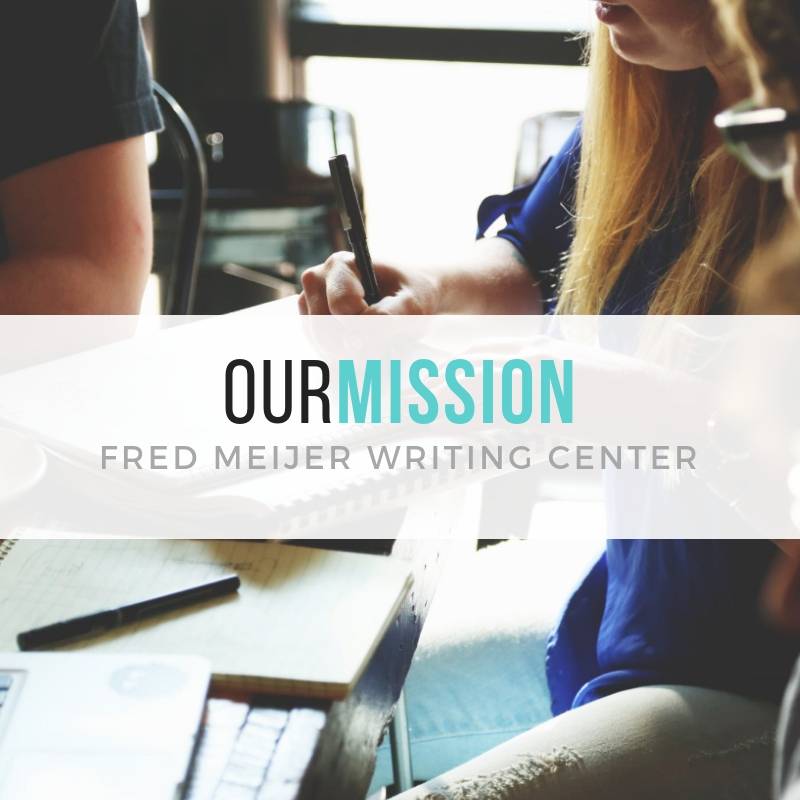 The Fred Meijer Center for Writing and Michigan Authors considers power to be an instrumental feature in one’s belief of their own capacity to approach, complete, and succeed in any writing project; therefore, the center values our role in the empowerment of emerging, practiced, or expert writers. Through our pedagogically sound consulting techniques, consultants provide writers with the time and space to celebrate success, identify concerns, develop helpful strategies, and grow a personalized voice and style so as to continue the writing process beyond the walls of the Writing Center. We make it our mission to be a supportive place and service for writers, who want or need to acknowledge and grow their own agency over any writing project or future writing goal.