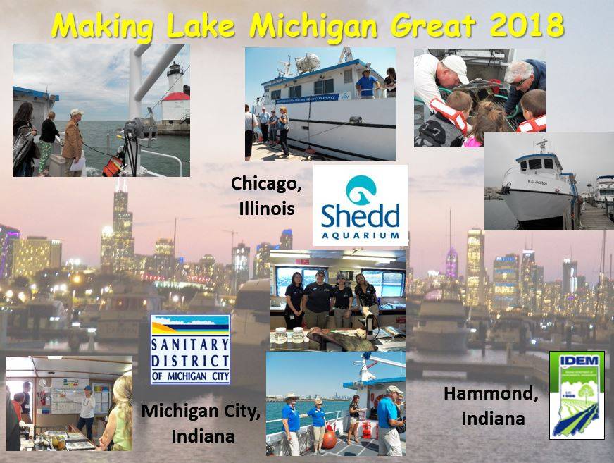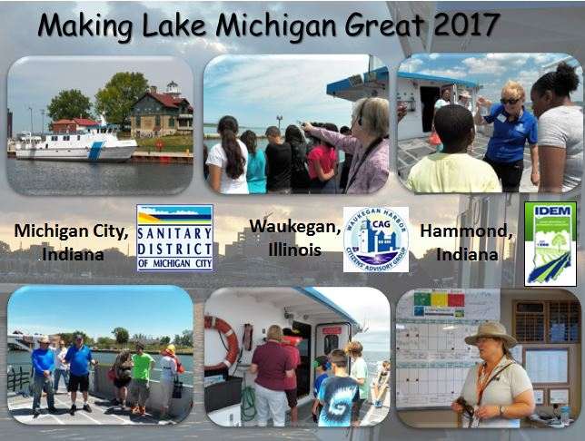 Since 1998, the W.G. Jackson research and education vessel has made its way around Lake Michigan. In addition to providing aquatic science field trips out of her home port in Muskegon, the W.G. Jackson has visited 34 additional ports of call and every state around Lake Michigan. These away trips (formerly called the “Making Lake Michigan Great” tour) use the AWRI research and education vessels to spread the word about stewardship and restoration activities in the Lake Michigan basin. The tours were originally a project of the U.S. EPA's Lake Michigan Forum, and funded by the U.S. EPA Great Lakes Restoration Initiative. There have been cruises for students and the public, open houses, teacher workshops, and community events.