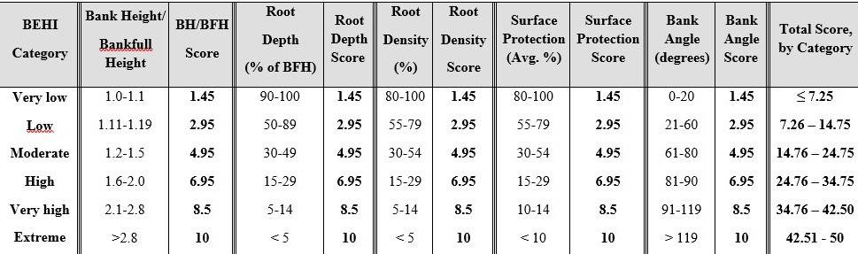 • Bank Erosion Hazard Index (BEHI) surveys at 150 sites and prioritization of 30 locations according to the BEHI criteria.