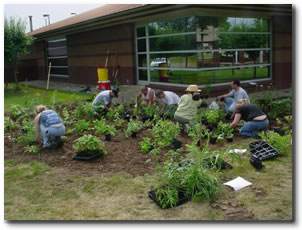 Many rain gardens use native plants with deep rooting systems that are well suited for dealing with saturated soil when the garden is fully charged with runoff. Species of perennial plants native to our region are recommended because they are adapted to local conditions and will not need extra care once they are established. For complete steps download this rain garden fact sheet developed by the rain gardens of West Michigan. (PDF, 3.3mb)